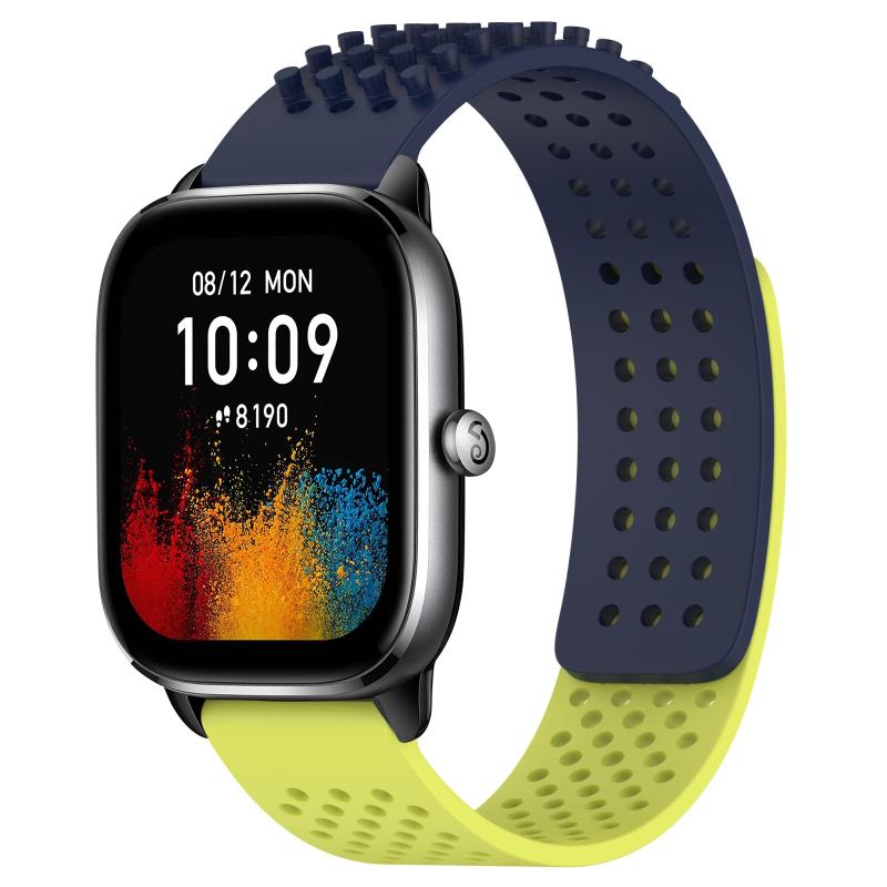 For Amazfit GTS 4 Mini 20mm Holes Breathable 3D Dots Silicone Watch Band(Midnight Blue+ Lime Green)