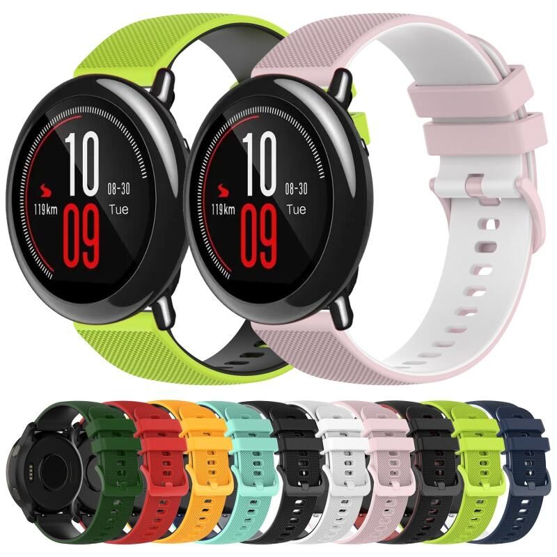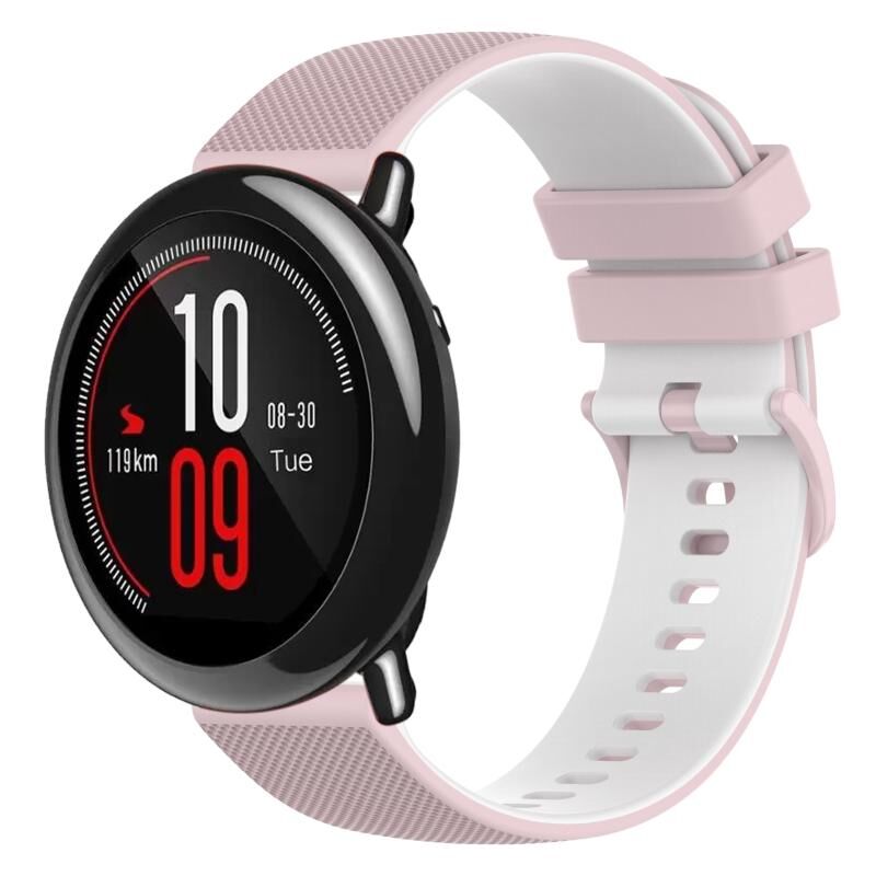 Για Amazfit Pace 22 χιλιοστά Checkered δύο χρωμάτων σιλικόνης ρολόι μπάντα (ροζ + λευκό)