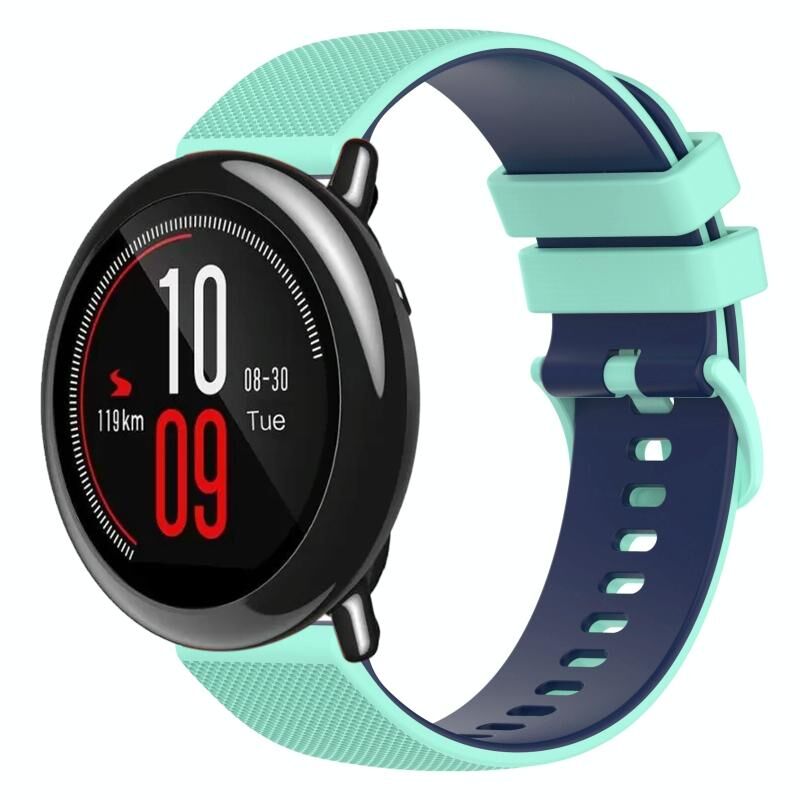 Για Amazfit Pace 22 χιλιοστά Checkered δύο χρωμάτων σιλικόνης ρολόι μπάντα (Teal + μπλε)