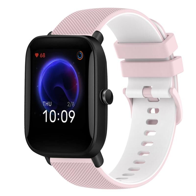 For Amazfit Pop 20mm Checkered Two-Color Silicone Watch Band(Pink+White)