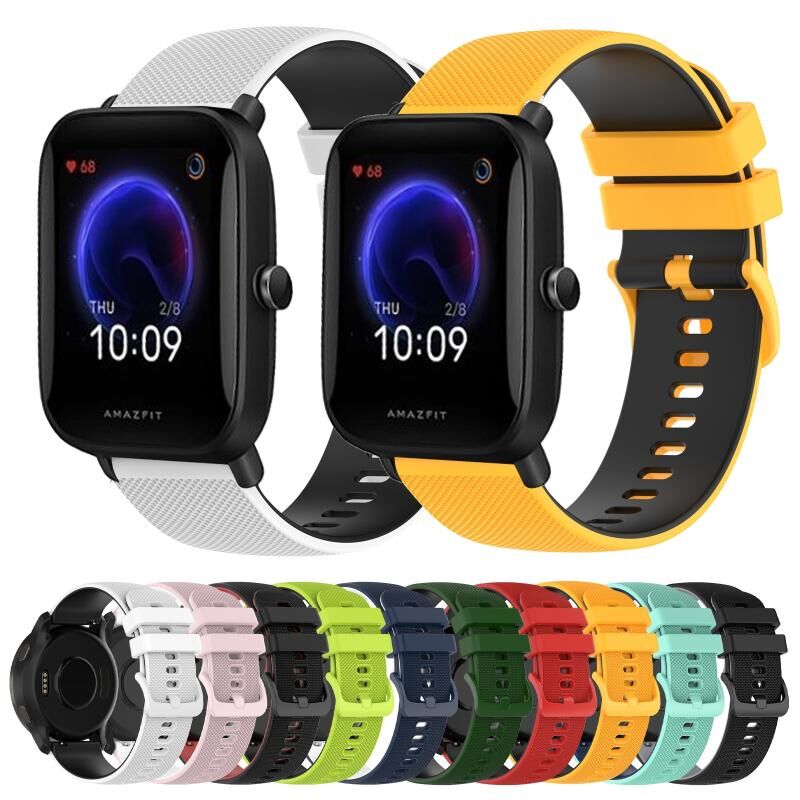 For Amazfit Pop 20mm Checkered Two-Color Silicone Watch Band(Red+Black)