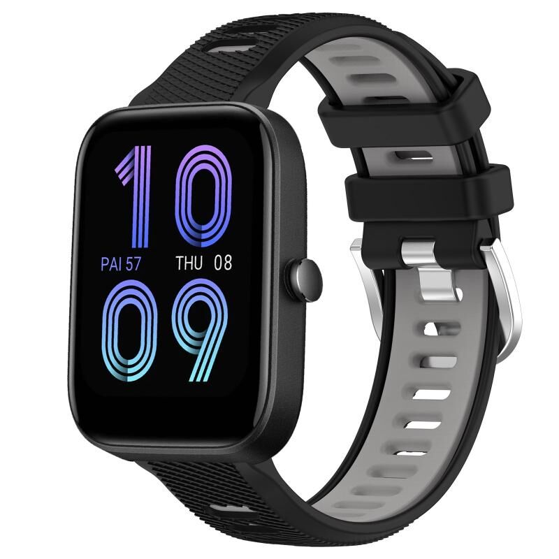 Για Amazfit Pop 20mm Διπλής Υφής Δύο Χρωμάτων Λουράκι Σιλικόνης με Ατσάλινη Αγκράφα (Λευκό+Μπλε)