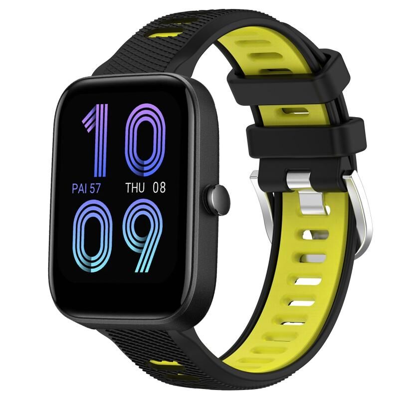 Για Amazfit Pop 20mm Διπλής Υφής Δύο Χρωμάτων Λουράκι Σιλικόνης με Ατσάλινη Αγκράφα (Λευκό+Μπλε)