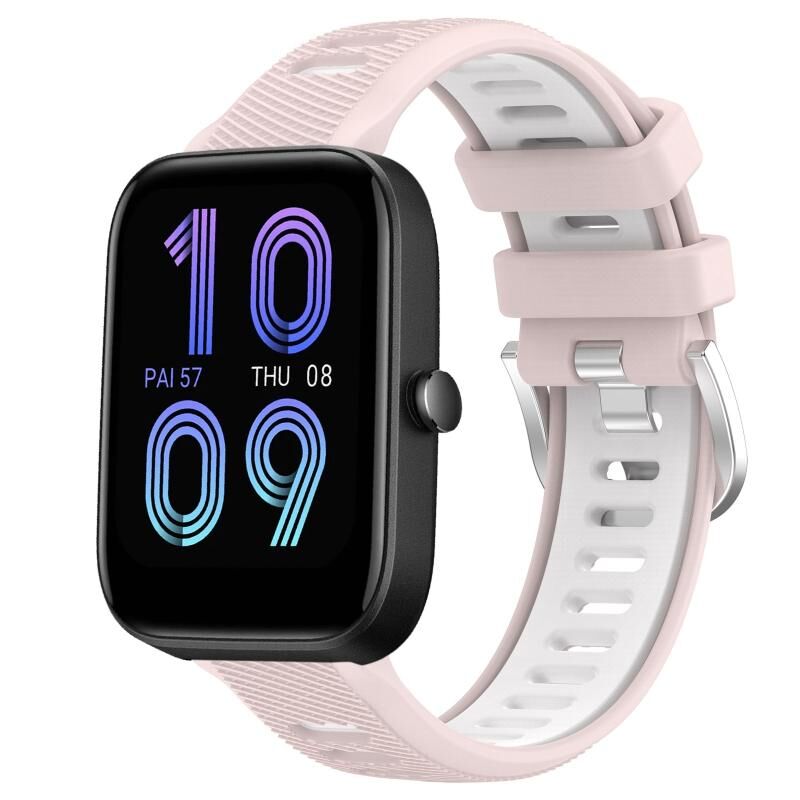 Για Amazfit Pop 20mm Διπλής Υφής Δύο Χρωμάτων Λουράκι Σιλικόνης με Ατσάλινη Αγκράφα (Λευκό+Μπλε)
