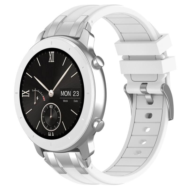 For Amazfit Pop 20mm Quick Release Silver Buckle Royal Silicone Watch Band(White)