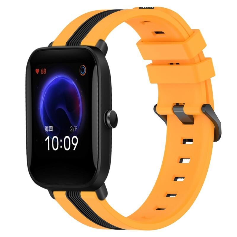 Για Amazfit Pop 20mm Κάθετη Δίχρωμη Σιλικόνη Λουράκι Ρολογιού (Πορτοκαλί+Μαύρο)