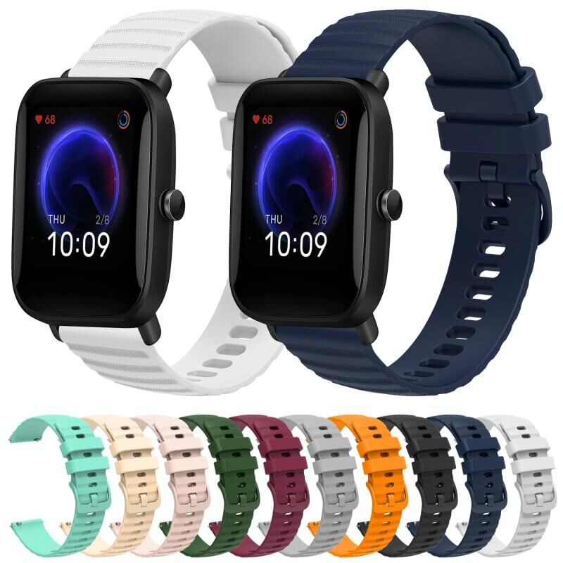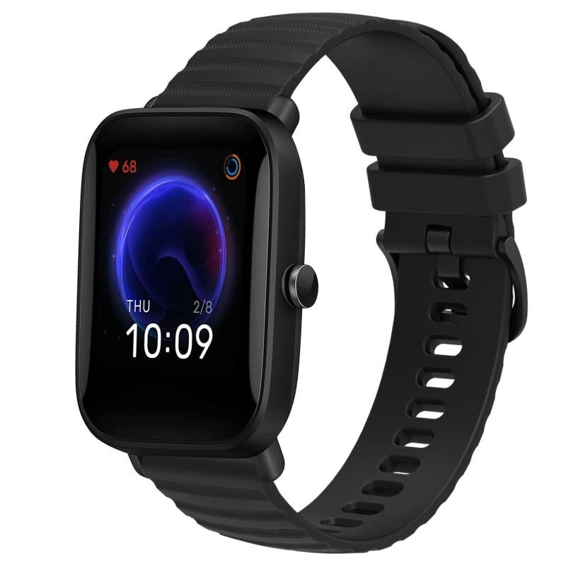 Για Amazfit Pop 20 χιλιοστά κυματιστή Dot μοτίβο στερεό χρώμα σιλικόνης ρολόι μπάντα (μαύρο)
