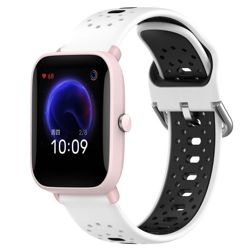 Για Amazfit Pop Pro 20mm Αναπνεύσιμο Διχρωμικό Λουράκι Σιλικόνης Ρολογιού (Λευκό+Μαύρο)