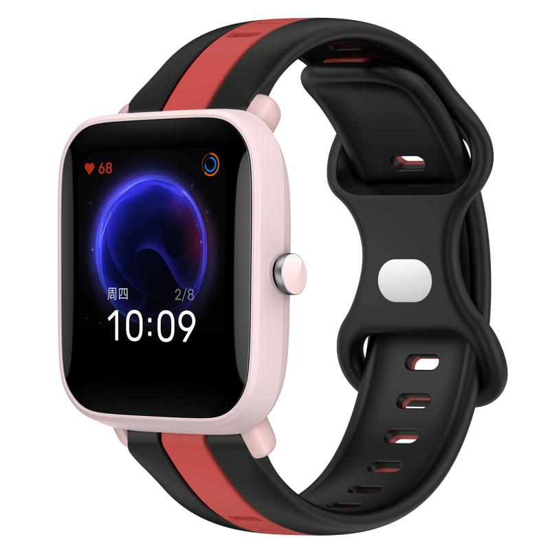 For Amazfit Pop Pro 20mm Butterfly Buckle Two-Color Silicone Watch Band(Black+Red)