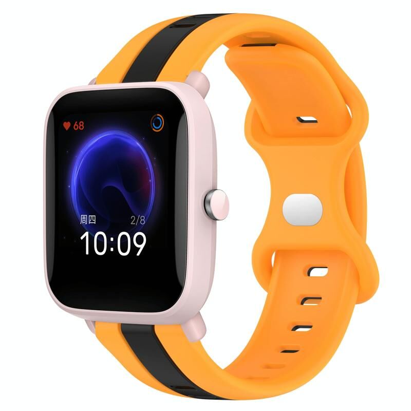 For Amazfit Pop Pro 20mm Butterfly Buckle Two-Color Silicone Watch Band(Black+Yellow)