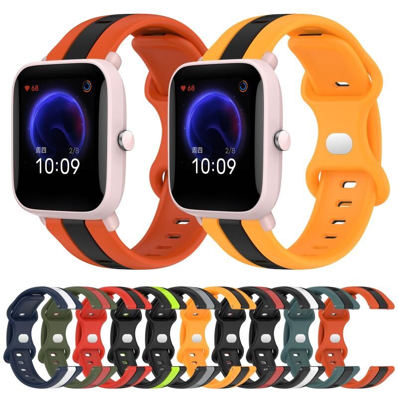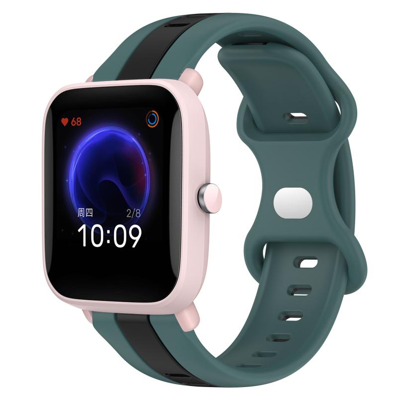 For Amazfit Pop Pro 20mm Butterfly Buckle Two-Color Silicone Watch Band(Green+Black)