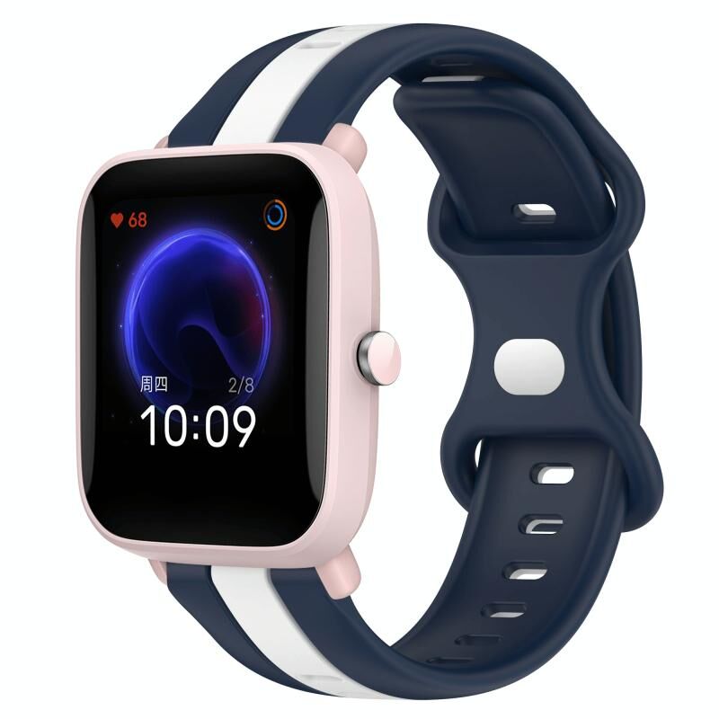 For Amazfit Pop Pro 20mm Butterfly Buckle Two-Color Silicone Watch Band(White+Blue)