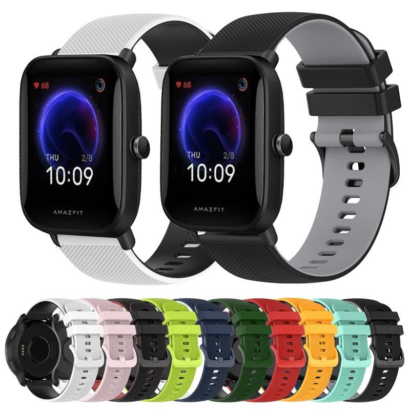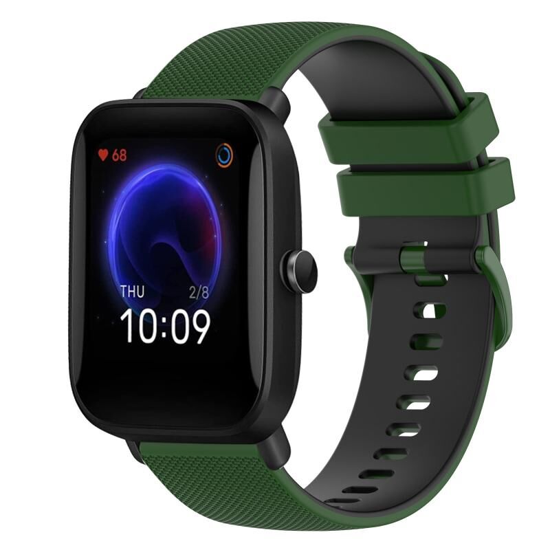 For Amazfit Pop Pro 20mm Checkered Two-Color Silicone Watch Band(Amy Green+Black)