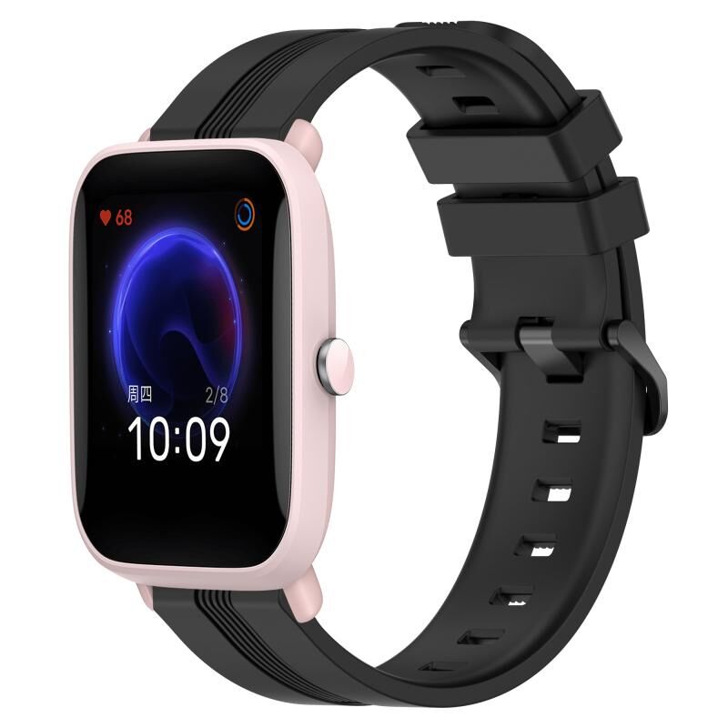 Για Amazfit Pop Pro 20mm Κυρτό Λουρί Σιλικόνης Ραβδωτό (Λευκό)