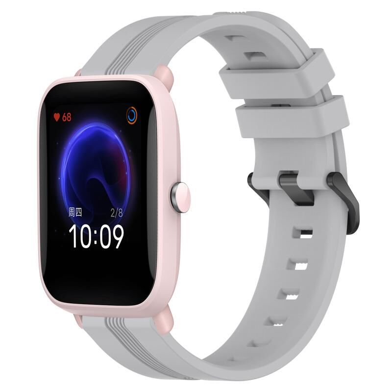 Για Amazfit Pop Pro 20mm Κυρτό Λουρί Σιλικόνης Ραβδωτό (Λευκό)