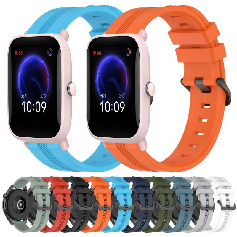 Για Amazfit Pop Pro 20mm Κυρτό Λουρί Σιλικόνης Ραβδωτό (Λευκό)