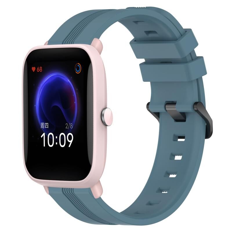 Για Amazfit Pop Pro 20mm Κυρτό Λουρί Σιλικόνης με Ρίγες (Rock Cyan)