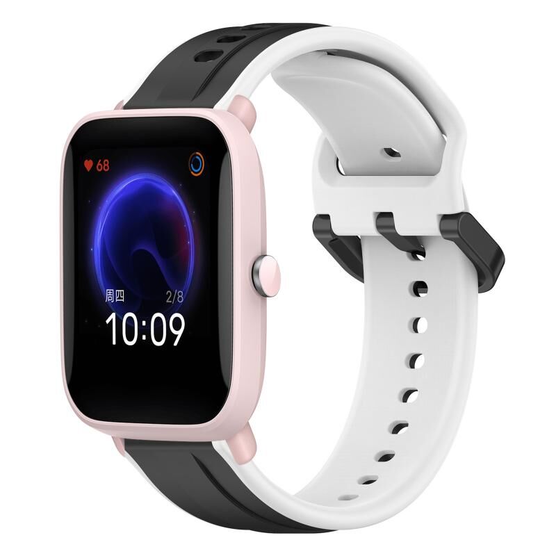 Για Amazfit Pop Pro 20 χιλιοστά κυρτό βρόχο δύο χρωμάτων σιλικόνης ρολόι μπάντα (μαύρο + λευκό)