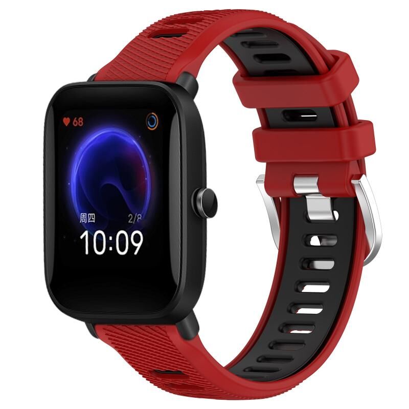 Για Amazfit Pop Pro 20mm Διπλής Υφής Δύο Χρωμάτων Λουράκι Σιλικόνης με Ατσάλινη Αγκράφα (Λευκό+Μπλε)