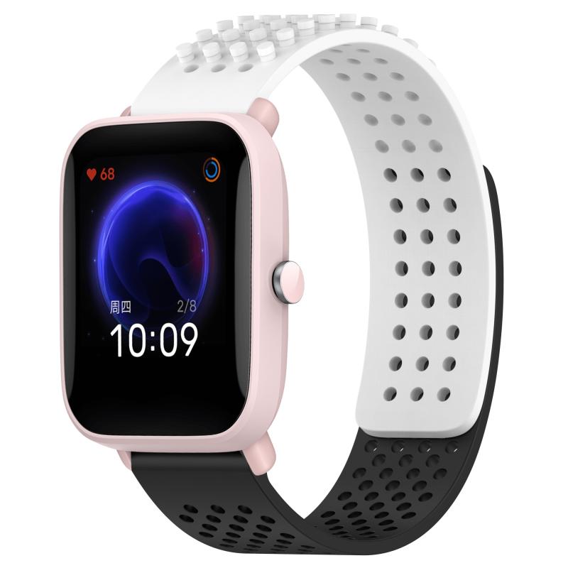 For Amazfit Pop Pro 20mm Holes Breathable 3D Dots Silicone Watch Band(White+Black)