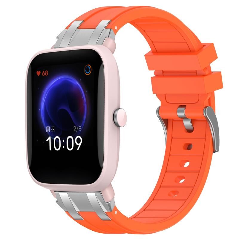 For Amazfit Pop Pro 20mm Quick Release Silver Buckle Royal Silicone Watch Band(Orange)