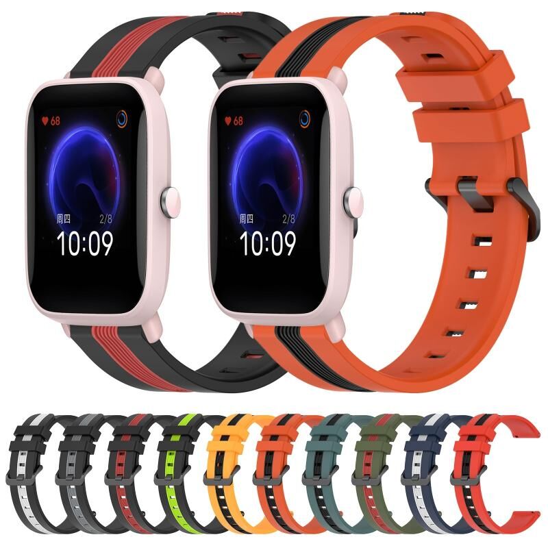 Για Amazfit Pop Pro 20mm Κάθετη Δίχρωμη Σιλικόνη Λουράκι Ρολογιού (Πορτοκαλί+Μαύρο)