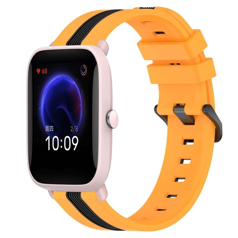 Για Amazfit Pop Pro 20mm Κάθετη Δίχρωμη Σιλικόνη Λουράκι Ρολογιού (Πορτοκαλί+Μαύρο)
