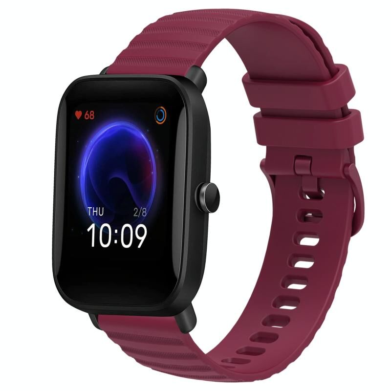 Για Amazfit Pop Pro 20 χιλιοστά κυματιστό μοτίβο Dot στερεό χρώμα σιλικόνης ρολόι μπάντα (κόκκινο κρασί)