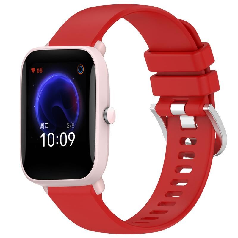 Για Amazfit Pop Pro / Pop / Bip U 20 χιλιοστά υγρό γυαλιστερό ασημί πόρπη σιλικόνης ρολόι μπάντα (κόκκινο)
