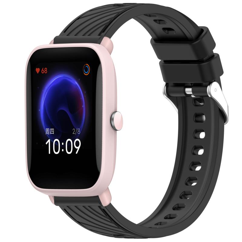 For Amazfit Pop Pro Stripe Texture 20mm Silicone Watch Band(Black)