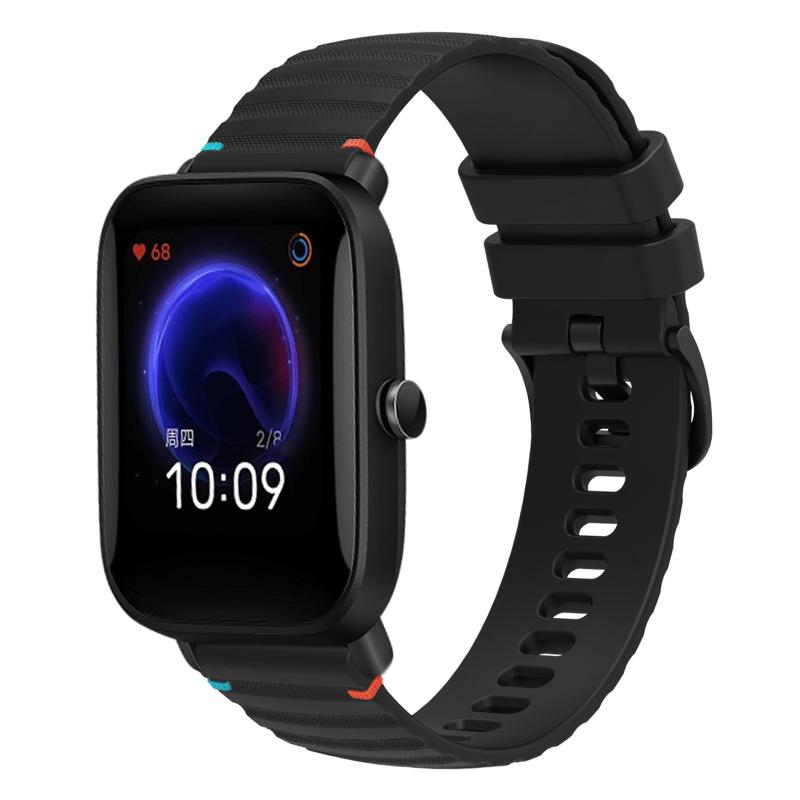 For Amazfit Pop Wavy Dotted Stitched 20mm Silicone Watch Band(Black)
