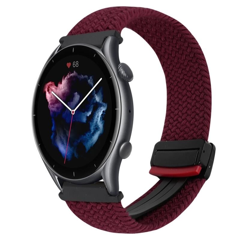 For Amazfit Sport Watch 3 22mm Magnetic Buckle Braided Watch Band(Wine Red)