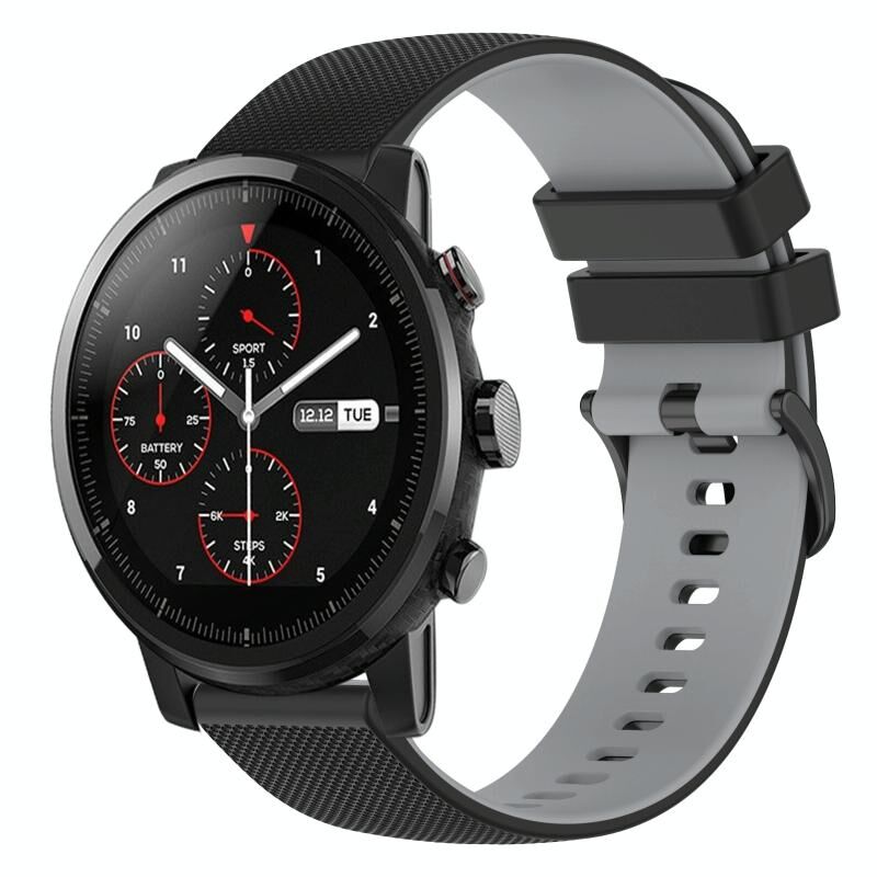 Για Amazfit Stratos 22 χιλιοστά Checkered δύο χρωμάτων σιλικόνης ρολόι μπάντα (μαύρο + γκρι)