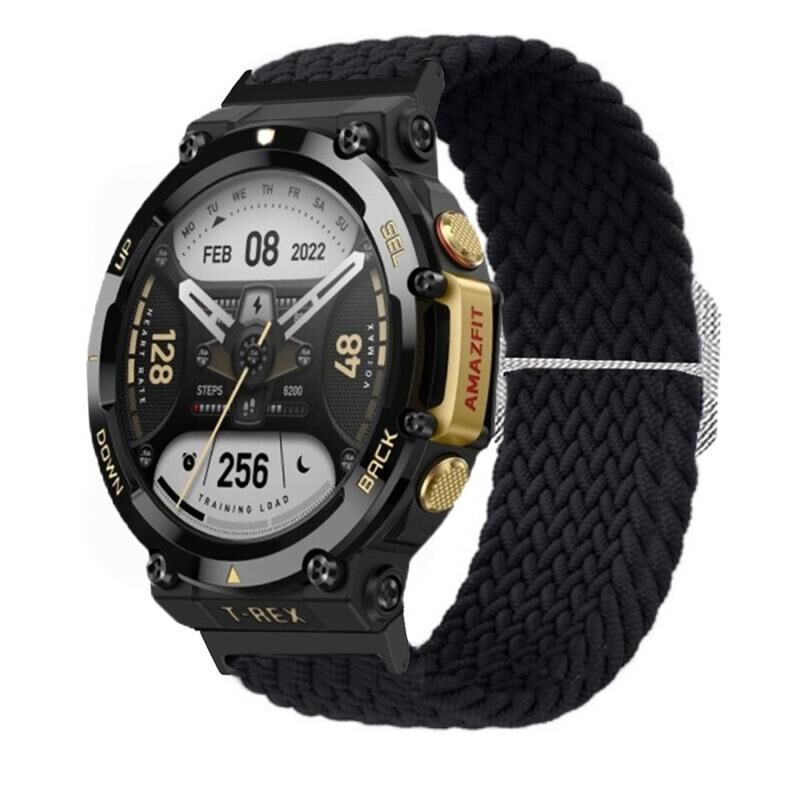 Για Amazfit T-Rex 2 Ρυθμιζόμενη πόρπη Πλεκτή ζώνη ρολογιού από νάιλον (μαύρο)