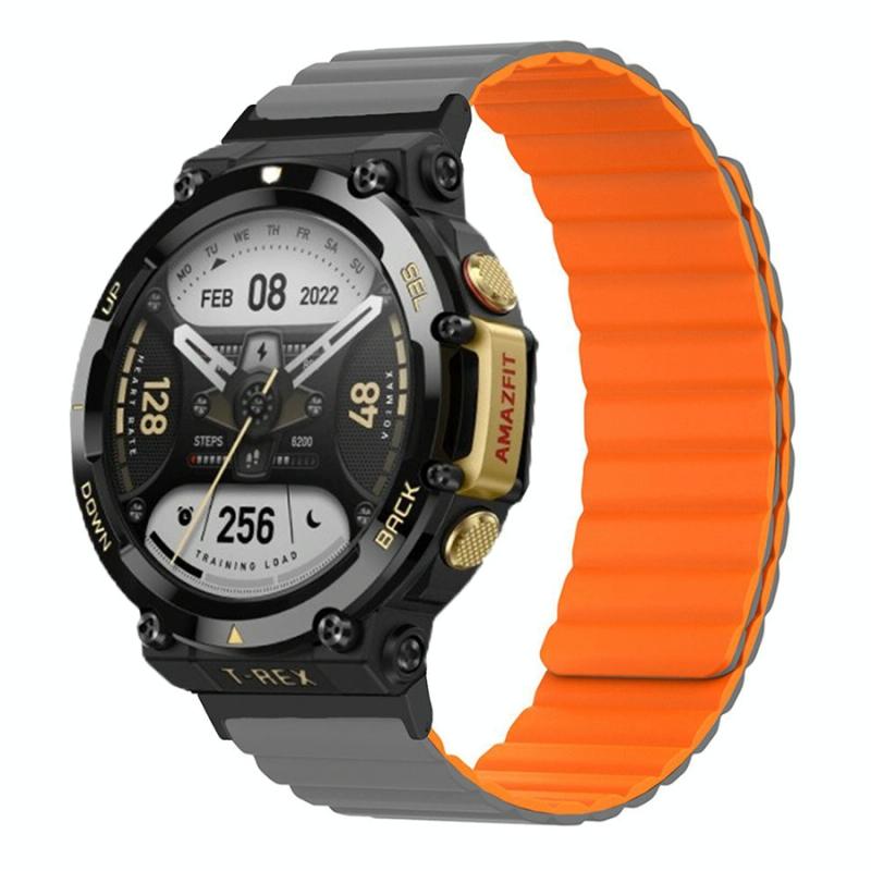 For Amazfit T-Rex 2 Silicone Magnetic Dual-color Watch Band(Grey Orange)