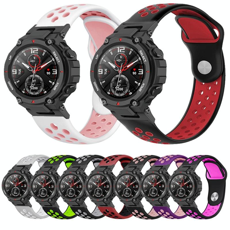 For Amazfit T-Rex 2 Two-color Holes Reverse Buckle Silicone Watch Band(Black Green)