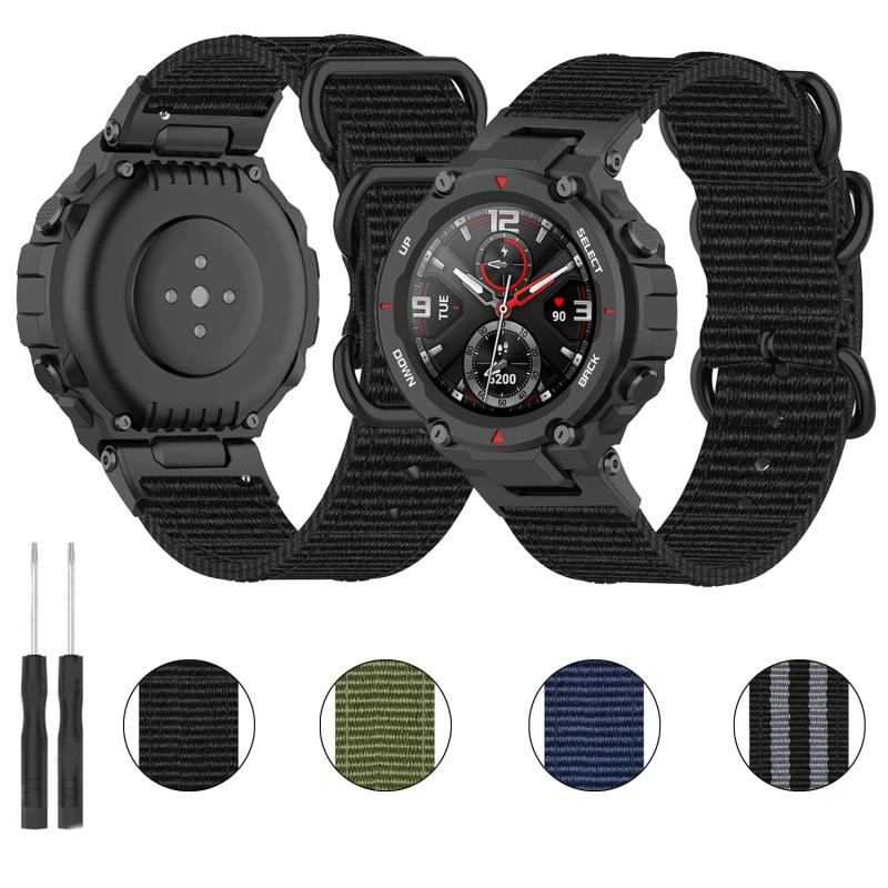 For Amazfit T-Rex / T-Rex Pro / Ares Three-ring Black Buckle Nylon Watch Band(Green)