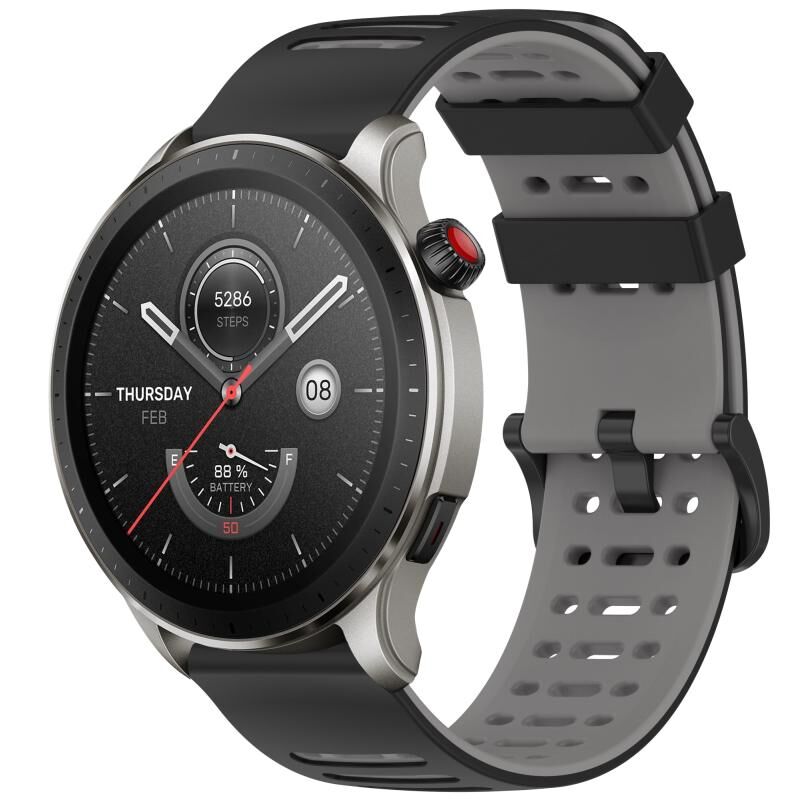 Για Amazfit Watch 22mm κοίλο τρεις σειρές τρύπα δύο χρώμα σιλικόνης ρολόι μπάντα ρολογιών (μαύρο + γκρι)