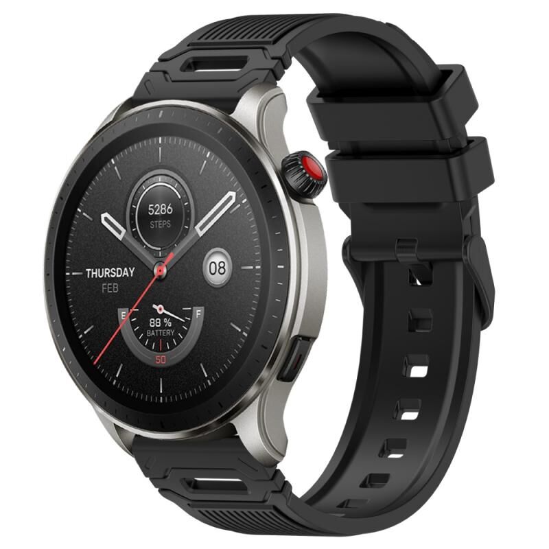 Για Amazfit ρολόι 22mm κάθετο μοτίβο μαύρο πόρπη σιλικόνης ρολόι μπάντα (μαύρο)