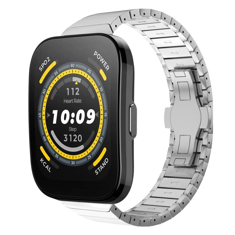 Για Amazfit Watch Bip 5 λουρί ρολογιού από κράμα 22mm με αγκράφα πεταλούδας και μονόχρωμη βαφή (Ασημί)