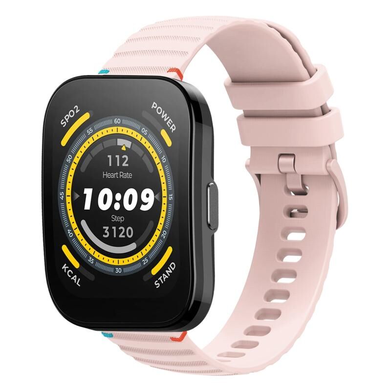 Για Amazfit Watch Bip 5 Wavy Dotted Stitched 22mm Silicone Watch Band (Rose Pink)