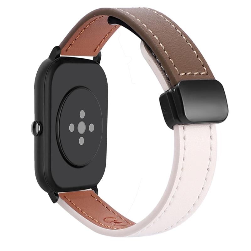 Για Amazfit Watch Bip5 Λεπτή Μέση 22mm Μαγνητικό Δερμάτινο Λουράκι Μικροϊνών (Απρίκοτο-Καραμέλα Μακιάτο)