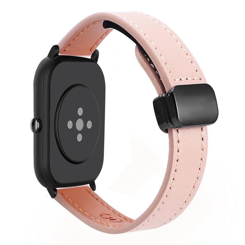 Για Amazfit Watch Bip5 Λεπτή Μέση 22mm Μαγνητικό Δερμάτινο Λουράκι Μικροϊνών (Πορτοκαλί-Κρεμ Απρίκοτο)