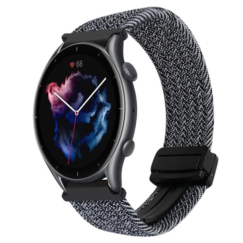Για Amazfit Watch GTR 3 Pro 22mm Μαγνητικό Κούμπωμα Πλεκτή Ζώνη Ρολογιού (Μαύρη Άμμος Fed)