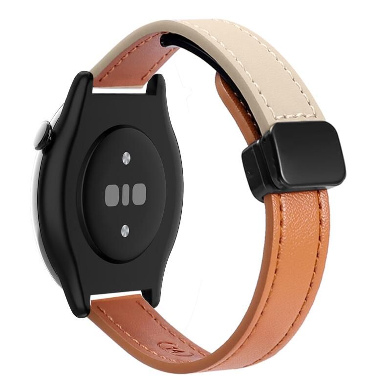 Για Amazfit Watch GTR 3 Pro Μικρή Περίμετρος 22mm Μαγνητικό Δερμάτινο Λουράκι Μικροϊνών (Πορτοκαλί-Κρεμ Απρίκοτο)