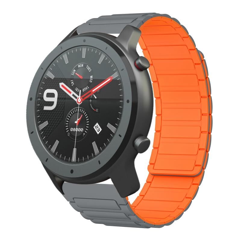 Για Amazfit Watch GTR 47mm 22mm I-shaped Μαγνητική ζώνη ρολογιού σιλικόνης (γκρι+πορτοκαλί)