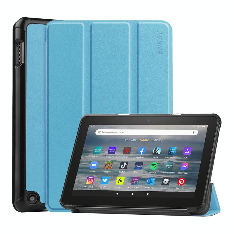 For Amazon Fire 7 12th 2022 ENKAY Smart Leather Tablet Case(Light Blue) (ENKAY)