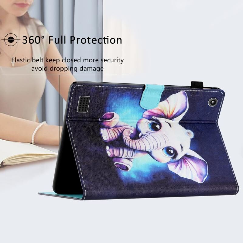 For Amazon Fire 7 2019/2017/2015 Coloured Drawing Stitching Smart Leather Tablet Case(Elephant)