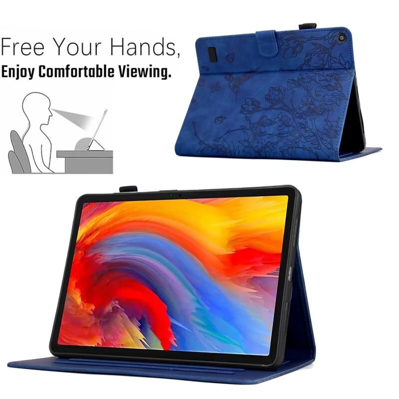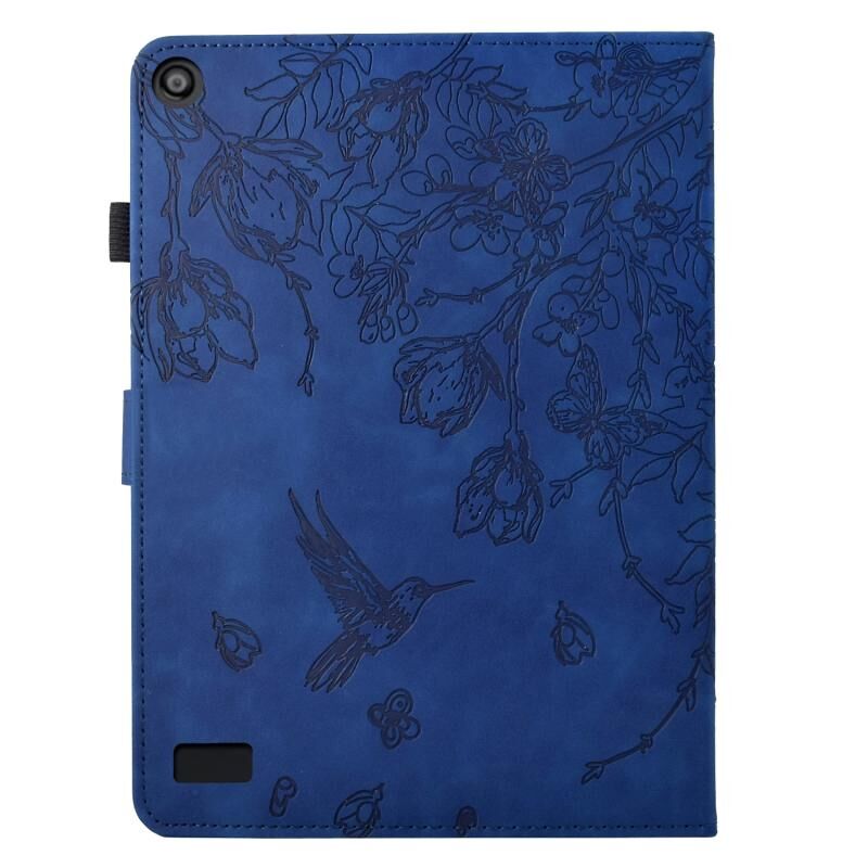 Θήκη Smart δέρματος με ανάγλυφα λουλούδια και πουλιά για Amazon Fire 7 2019/2017/2015 (Καφέ)