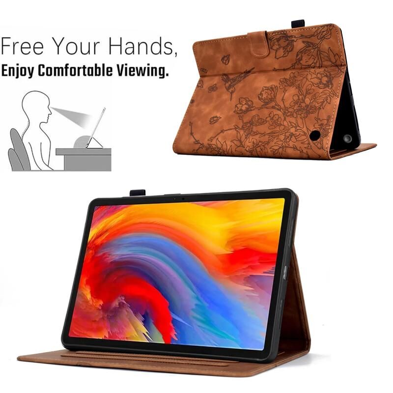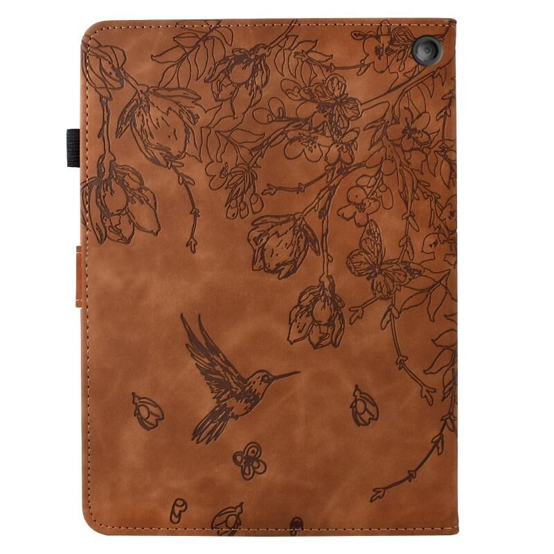 Θήκη Smart δέρματος με ανάγλυφα λουλούδια και πουλιά για Amazon Fire 7 2022 (Καφέ)